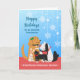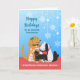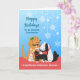 Happy Holidays for an Awesome Veterinarian, paper greeting card. Winter holidays card with an illustration of dogs, a rabbit, and a cat under white snowflakes. Fully customisable cover with text areas for your personalisation. Image, art, and verse © Shoaff Ballanger Studios, 2024.