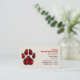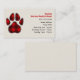 A business card for a vererinarian featuring an illustration of a red and black plaid paw print. Personalise the text with your information.