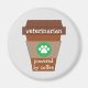 This magnet displays a brown coffee cup with the text "veterinarian - powered by coffee." There is a white paw print on a green background on the sleeve of the cup.