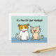 Cute dog and cat on reminder postcard. Fill in your clinic's information on the back. Click the Customise button to create a different text layout.
