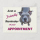 This appointment reminder postcard says, "Just a Friendly Reminder of your Appointment." Perfect for all your client's appointment needs, this postcard shows an adorable photograph of a handsome and gentle Blue Nose Pitbull named Sarge. Sarge is looking up at you with big wide eyes, ears flopping over his head and a comical expression on his face as he eagerly awaits someone to throw his ball for him. Easily customisable for all your appointment reminder needs.