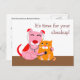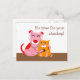 Remind your clients that it's checkup time with these cute dog and cat postcards. The red dog is examining the orange cat with the stethoscope.
