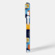 This vibrant phone case features a bold abstract geometric pattern with swirling squares, dynamic brush textures and bright color contrasts in blue, orange and yellow. The design blends energetic shapes and modern artistic elements for a striking visual effect. At the bottom, two editable text fields allow you to add a name and a short phrase to make the case uniquely yours. Perfect for anyone who loves expressive abstract art, colorful geometric patterns and eye-catching modern design that elevates their everyday tech.