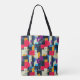 This tote bag features a striking abstract geometric pattern in vibrant colours, making it a perfect accessory for those who love bold and modern designs. The combination of red, blue, yellow, and beige shapes creates a dynamic and eye-catching look, ideal for fashion-forward individuals. This bag is not just a functional item but also a statement piece that adds a pop of colour and style to any outfit. Perfect for daily use, shopping, or as a gift for art enthusiasts