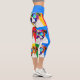 Step out in style with these bold and colourful capri leggings, featuring a vibrant abstract Jack Russell dog design inspired by pop art. Perfect for dog lovers and art enthusiasts, these leggings are a true statement piece. The dynamic pattern showcases a playful mix of colours—bright blues, yellows, reds, and purples—creating a lively, energetic vibe.