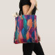 Vibrant abstract pattern with overlapping geometric shapes in various shades of pink, orange, blue, and purple, with floral elements