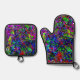 Vibrant abstract pot holder and oven mitt,Blast Oven Mitt & Pot Holder Set