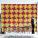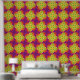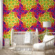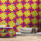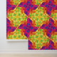 This new wallpaper design features a vibrant and bold geometric pattern. The design includes overlapping shapes in various bright colours such as red, orange, yellow, green, and purple. The repeating pattern forms intricate star-like and diamond-like shapes, giving the wallpaper a dynamic and lively appearance.