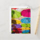 Solid and bold colours of pink, green, purple, yellow, and blue rain umbrellas hang over a small street in Split, Croatia. These vibrant and colourful umbrellas provide a canopy of shade, along with some quirky fun to those who walk under. This photograph brings that colourful fun for you or as a gift to others! This postcard is fully customisable.