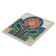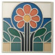 Add a touch of timeless artistic flair to your home with this stunning ceramic tile, inspired by the elegant Art Nouveau movement. The design showcases a beautifully stylised daisy, bursting with colour. Its vibrant orange-red petals radiate from a cheerful sunny yellow centre, creating a warm and inviting focal point. The flower is artfully framed by a bold royal blue arch and flanked by lush, deep green leaves. The composition rests on a geometric base of muted beige and teal, grounding the organic forms above. Each coloured section is outlined with clean, creamy-white raised lines, giving the tile a delightful tactile quality and a look reminiscent of classic stained glass. This versatile tile is perfect for creating a memorable accent in a kitchen backsplash, bathroom, or as a unique decorative piece.