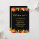 A vibrant autumn invitation with a black background and colourful borders of leaves and berries. (<a href='https://www.freepik.com/free-vector/autumn-background-with-pretty-leaves_2796958.htm'>Designed by Freepik</a>). <br/><br/>The card is easy to customise with your wording, font and font colour.<br/><br/>Not exactly what you're looking for? All our products can be custom designed to meet your needs at no extra charge.<br/><br/>Simply contact us at askcottonlamb@gmail.com.<br/><br/>Coordinating products available: Just ask us!