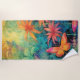 Modern Vibrant Batik Watercolor Floral With Butterflies Beach Towel with editable Name. This Personalized Beach Towel is simply beautiful! Customize your Beach Towel by changing the name, font and color. You can switch out the name for your favorite quote. Give holiday a luxurious tropical feel with this Vibrant Batik Beach Towel. AI generated artwork.
