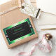 The design features a noble shimmering green frame with fine decor lines, on a plain black background.