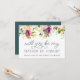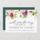 Choose these beautiful cards to ask your bestie or sister to be your matron of honour in elegant style. Modern watercolor floral design features a top border of roses and peonies in violet purple, blush pink and green, with decorative typography and smoky blue grey lettering. Matron of honour proposal card wording reads "will you be my matron of honour? I can't say I do without you!" Add your matron of honour's name and your name, or personalise with a completely custom message along the bottom. Cards reverse to solid jewel toned jasper green.