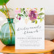Elegant and modern floral bridesmaids brunch invitation features a bouquet of vibrant and colourful watercolor flowers in shades of violet, burgundy, cream and blush, with lush green botanical accents. Personalise with your bridesmaids brunch details in elegant midnight blue typography accented with handwritten style calligraphy. Cards reverse to solid jasper green.