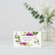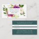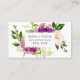 Chic referral cards feature your referral offer (shown with "refer a friend and you'll both receive 20% off") overlaid on a bouquet of vibrant watercolor flowers in violet purple and jasper green. Reverse side has space for your referral terms, customers' names, and business contact information in white on jewel toned jasper green.