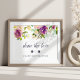 Designed to match our Vibrant Bloom wedding collection, this elegant botanical sign lets guests know about your custom wedding hashtag for social media sharing. Personalise the header and hashtag (shown with "Share the Love"), framed by a top border of pink and purple watercolor florals and greenery. Includes two social media icons joined by a heart.