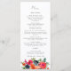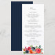Elements: vibrant watercolor flowers and greenery with names in a fun modern handwritten style. Colours: Blue, navy, dusty blue, orange, terracotta, burnt sienna, red, crimson, green. Themes: botanical, elegant, chic, modern, romantic, casual, garden, fall, spring, summer, outdoors. Collection: Vibrant Blue Orange Red Botanical Wedding Collection. Product Type: Menu