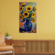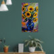 Bring a burst of sunshine and artistic flair into your home with this stunning Blue and Yellow Sunflower Expressionist Painting Poster. Featuring a striking composition of vibrant yellow sunflowers in a deep cobalt blue vase, the energetic brushwork and complementary colors create a captivating visual pop. This unique wall art piece adds a lively, modern touch to any room, perfect for art lovers and those seeking bold decor.