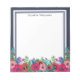 Floral notepad with a beautiful arrangement of bohemian flowers in pink and blue. Add your name in modern navy blue letters.