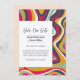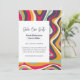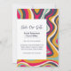 Vibrant bold abstract swirl background. Vibrant pink blue yellow retro colours. Unique artsy design for save the date invitation. Easily editable for your personal text.