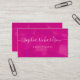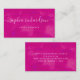 These colorful and stylish business cards feature your name in trendy white handwritten script with swirls, on a bright pink watercolor look background for a look that is both professional and trendy.
