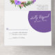 Elements: tropical floral wreaths surrounding your names an tetail. Names are in a whimsical script, while details are in a modern sans serif font. Colours: purple, pink, yellow, green, orchid, plum, magenta, fuschia, lemon, Themes: bright, tropical, beach, destination, romantic, bohemian, cheerful, modern, casual. Collection: Vibrant Casual Magenta Violet Yellow Wedding Collection Product Type: All-In-One Wedding Invitations