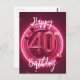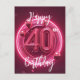 Vibrant Chic Neon Pink 40th Birthday Postcard