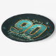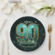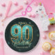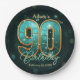 Vibrant Chic Teal Gold Metallic 90th Birthday Paper Plate