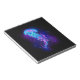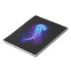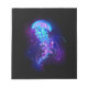 Large, blue, artistically drawn, glowing, bright jellyfish, with long tentacles on black background with purple bioluminescence. Luminous jellyfish.