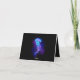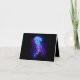 Large, blue, artistically drawn, glowing, bright jellyfish, with long tentacles on black background with purple bioluminescence. Luminous jellyfish.