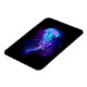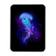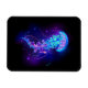 Large, blue, artistically drawn, glowing, bright jellyfish, with long tentacles on black background with purple bioluminescence. Luminous jellyfish.