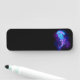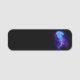 Large, blue, artistically drawn, glowing, bright jellyfish, with long tentacles on black background with purple bioluminescence. Luminous jellyfish.