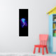 Large, blue, artistically drawn, glowing, bright jellyfish, with long tentacles on black background with purple bioluminescence. Luminous jellyfish.