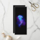 Large, blue, artistically drawn, glowing, bright jellyfish, with long tentacles on black background with purple bioluminescence. Luminous jellyfish.