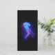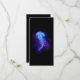 Large, blue, artistically drawn, glowing, bright jellyfish, with long tentacles on black background with purple bioluminescence. Luminous jellyfish.