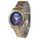 Very good quality watch that looks good whether dressing up or down. The band is sturdy. The watch is rather large so might not work for smaller folks. Recommended as a good gift. Printing is just a touch light but adds a nice touch of personalization.