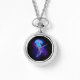 Large, blue, artistically drawn, glowing, bright jellyfish, with long tentacles on black background with purple bioluminescence. Luminous jellyfish.