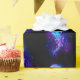 Large, blue, artistically drawn, glowing, bright jellyfish, with long tentacles on black background with purple bioluminescence. Luminous jellyfish.