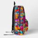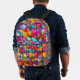 This printed backpack features a vibrant mosaic of bold colours arranged in a striking geometric pattern. The lively, modern design instantly stands out and adds a touch of artistic energy to school days, work commutes, travel, and everyday adventures. Perfect for anyone who loves expressive accessories and wants their essentials to feel bright, stylish, and full of personality.