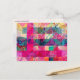 Vibrant Colourful Abstract Pink Plaid Funky Patter Postcard