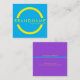 A sleak modern design with bold contrast colours of vibrant blue, purple and yellow. Simple and modern. Name, phone and e-mail. Classic business card but with a vibrant colour combination.