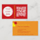 A sleak modern design with bold contrast colours of red, bright orange and yellow. Simple and modern. All the contact information you need: name, titel, social media, address, phone, website and e-mail. Classic business card but with a vibrant colour combination. Add your own logo and QR code.