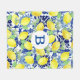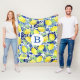 Vibrant Country Lemons & Blue Floral | Monogram Fleece Blanket