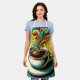 A vibrant, stylised illustration of a Cuban coffee cup with colourful swirls and bubbles bursting from the surface, set against a bright, radiating background that enhances the lively energy.