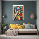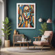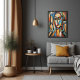 This striking cubist artwork is a unique and vibrant abstract portrait, poster print blending bold geometric shapes with a rich palette of warm and cool tones. Inspired by the cubist movement, this AI-generated masterpiece reimagines the human face through fragmented, angular forms, creating a sense of depth and dimension that draws the viewer in. The piece is perfect for adding a touch of modern sophistication to any space, whether it's a home office, living room, or gallery wall. Its dynamic composition and vibrant colours make it an eye-catching addition to contemporary and eclectic interiors.