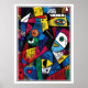 Dramatic and bold cubist style artwork features bold lines, vibrant colours geometric shapes and intriguing facial features seen from different angles. Great artwork for an office, dorm room or anywhere you'd like bold colours and expressive abstract art.