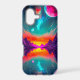 Protect your most crucial daily device with a premium accessory that radiates pure retro-futuristic energy and bold, striking beauty. This highly protective phone cover is beautifully decorated with a stunning, high-definition print of a neon synthwave alien landscape. The dynamic scene, featuring glowing pink moons and reflective purple mountains, turns your everyday smartphone into a stunning piece of 1980s-inspired portable art. Make it truly unique by adding your name, initials, or a cool gamer tag to the designated text template area.