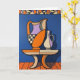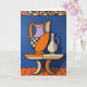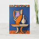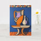This design shows a modern still-life scene built from geometric shapes and strong color contrasts, like two companions sharing a quiet moment on a patterned table. A large pitcher on the left mixes rich orange, soft lavender, and cool gray, with a black-and-white checker pattern that feels like a confident handshake between tones. To the right, a slimmer cream vessel with a faint lavender tint stands close by, suggesting an easy closeness without needing any extra details 👨. Behind them, a wide field of cobalt blue sets the stage, making the warm oranges and gentle purples feel more intimate, as if they’re leaning toward each other. Dark blue shadows fall sharply to one side, pointing to a single light source and giving the objects a grounded, steady presence. Near the top edge, a narrow border of small triangles, squares, and curved shapes in muted colors runs across like a decorative band. There is no text on the front, and the bottom area shows orange floorboards outlined with black lines and a small hint of a tabletop edge that reads like a tidy grid 🚗.