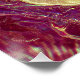 A crystal-clear glass bowl holds a halved magenta dragon fruit bursting with black seeds alongside whole dragon fruit and bright lemon slices, all floating on a hypnotic iridescent purple surface that ripples like molten crystal. Saturated tropical colors and surreal reflections create a bold, modern still life packed with exotic energy and glossy texture. Ideal for eye-catching posters, phone cases, stickers, mugs, kitchen wall art, mousepads, and décor that brings a fresh, psychedelic pop of color to any space.